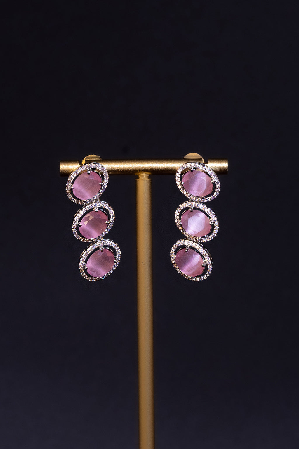 Our Elegant Pink AD Necklace sparkles with soft pink American Diamonds, creating a graceful and timeless look. Set in polished, high-quality metal, this necklace is perfect for weddings, parties, or special occasions. The delicate pink hue and radiant shine make it a unique addition to any jewelry collection.