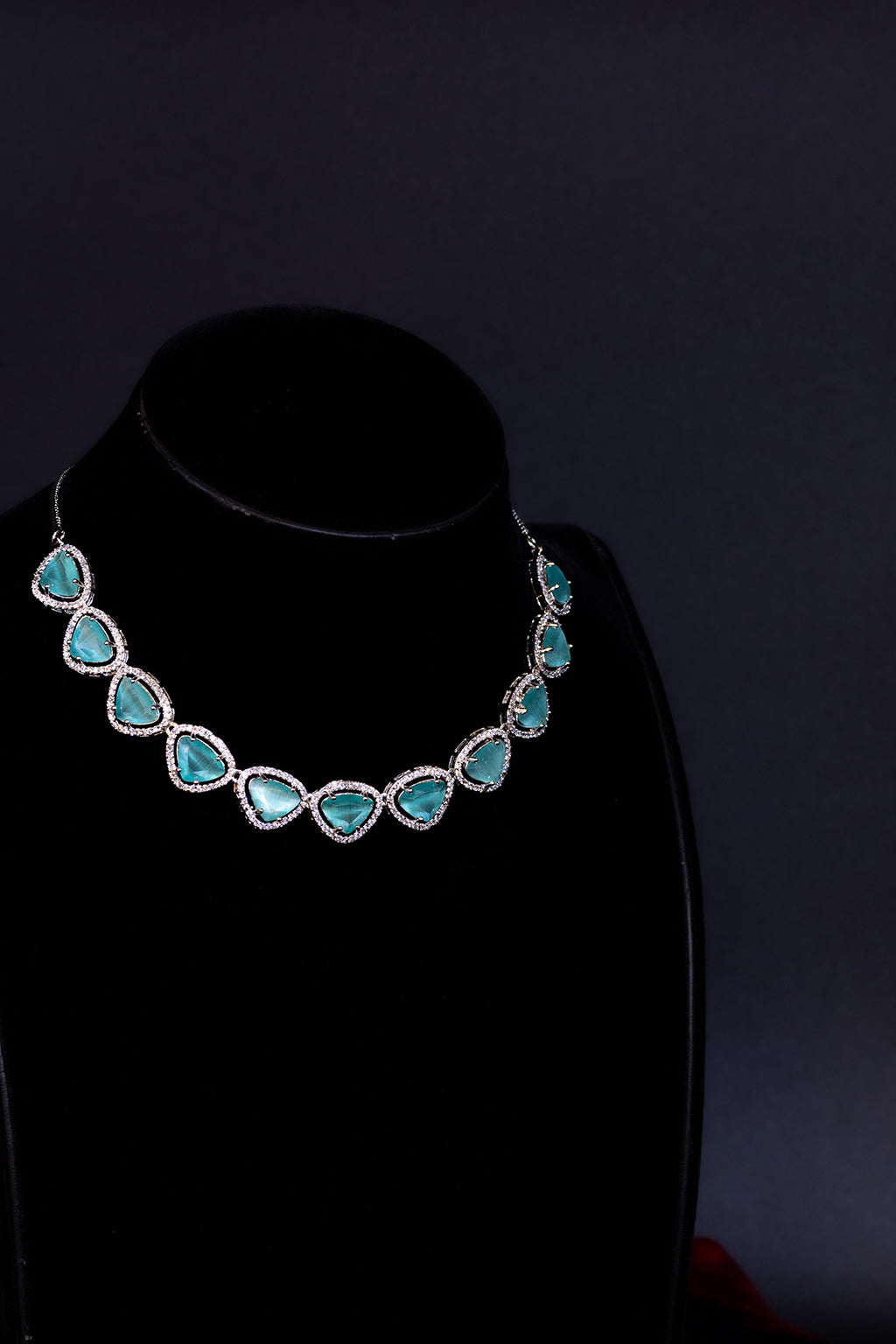 Discover the perfect balance of elegance and freshness with this mint green necklace and earrings set. The necklace features a beautiful mint green gemstone on a sleek chain, while the matching earrings are designed with the same soft mint stones to complete the look.