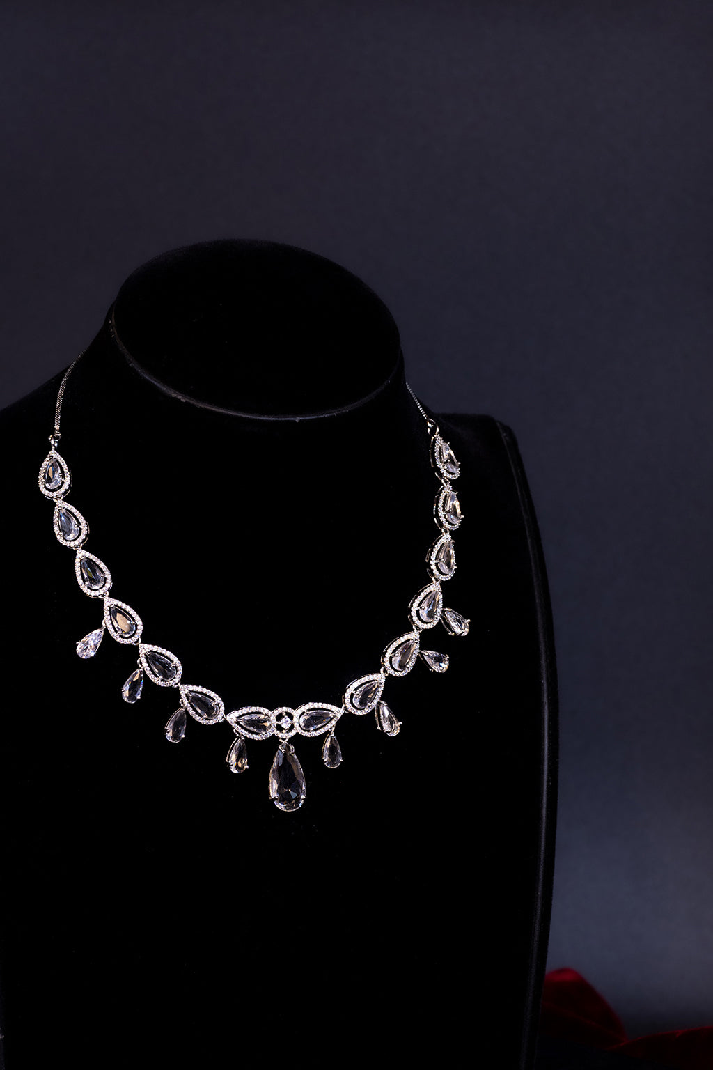 This elegant AD necklace combines sleek sophistication with a subtle pop of color. Featuring a delicate chain adorned with high-quality American diamonds, the necklace is enhanced with a hint of purple gemstones that add a touch of softness and vibrancy.