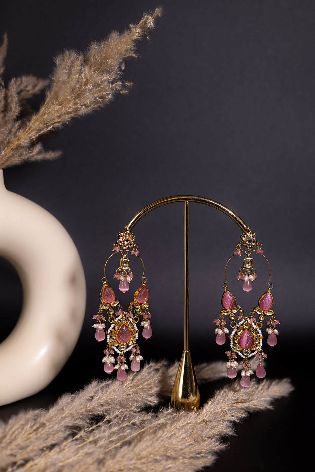 Embrace elegance with these beautiful pink jhumka earrings, featuring intricate detailing and a timeless design. The soft pink hues add a graceful touch, making them the perfect accessory for traditional wear and festive occasions.
