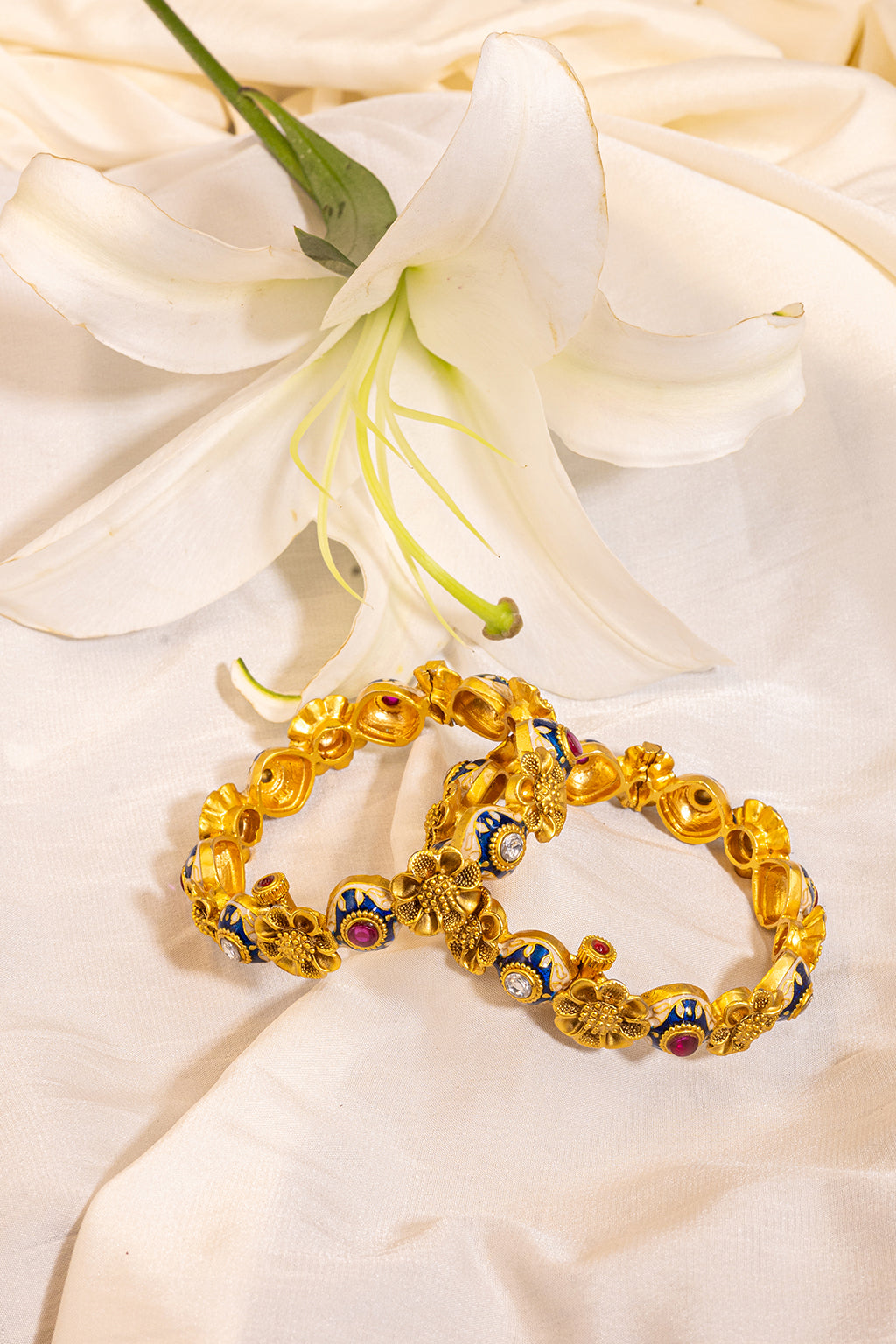 Crafted with intricate detailing, each bangle showcases rich, vivid hues and delicate patterns, adding a touch of royalty and cultural heritage to your look.
